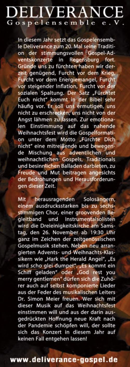 Adventskonzert "Over the Hills and Everywhere" 19.30 Uhr in der Dreieinigkeitskirche in Regensburg